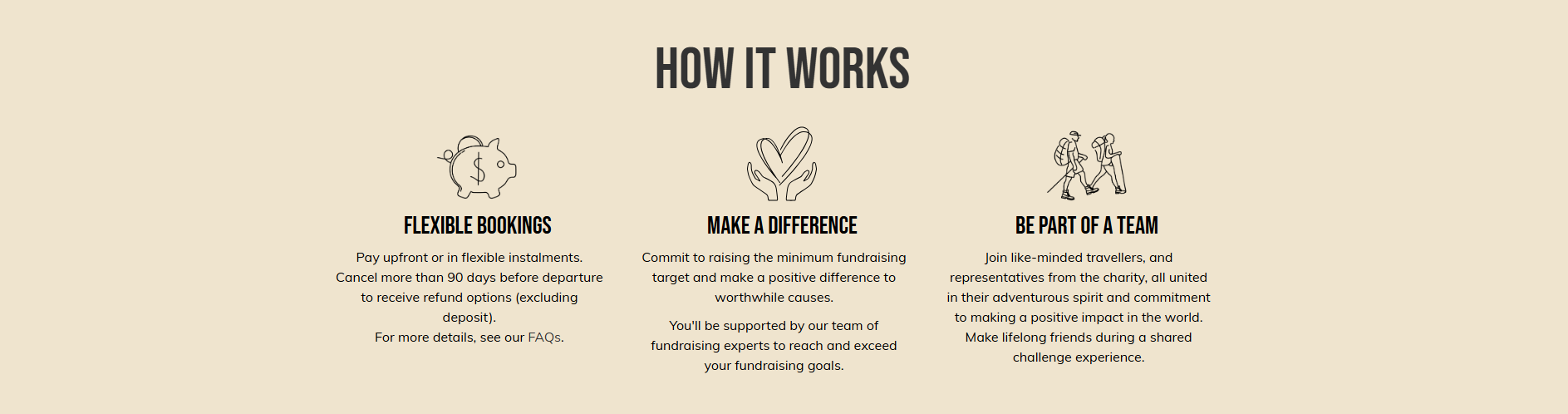 It’s normal to worry you won’t meet your fundraising target, but we know you can do it. In fact, with the support of Inspired Adventures, almost everyone goes on to raise far more than they imagined. By registering for the adventure, you agree to raise the minimum fundraising amount specified. Like you, we are looking to make a significant impact for our charity partners, so the goal is for each person to have met their fundraising target before departure. If you fail to raise the minimum fundraising target by this time, we will review the situation on a case-by-case basis.